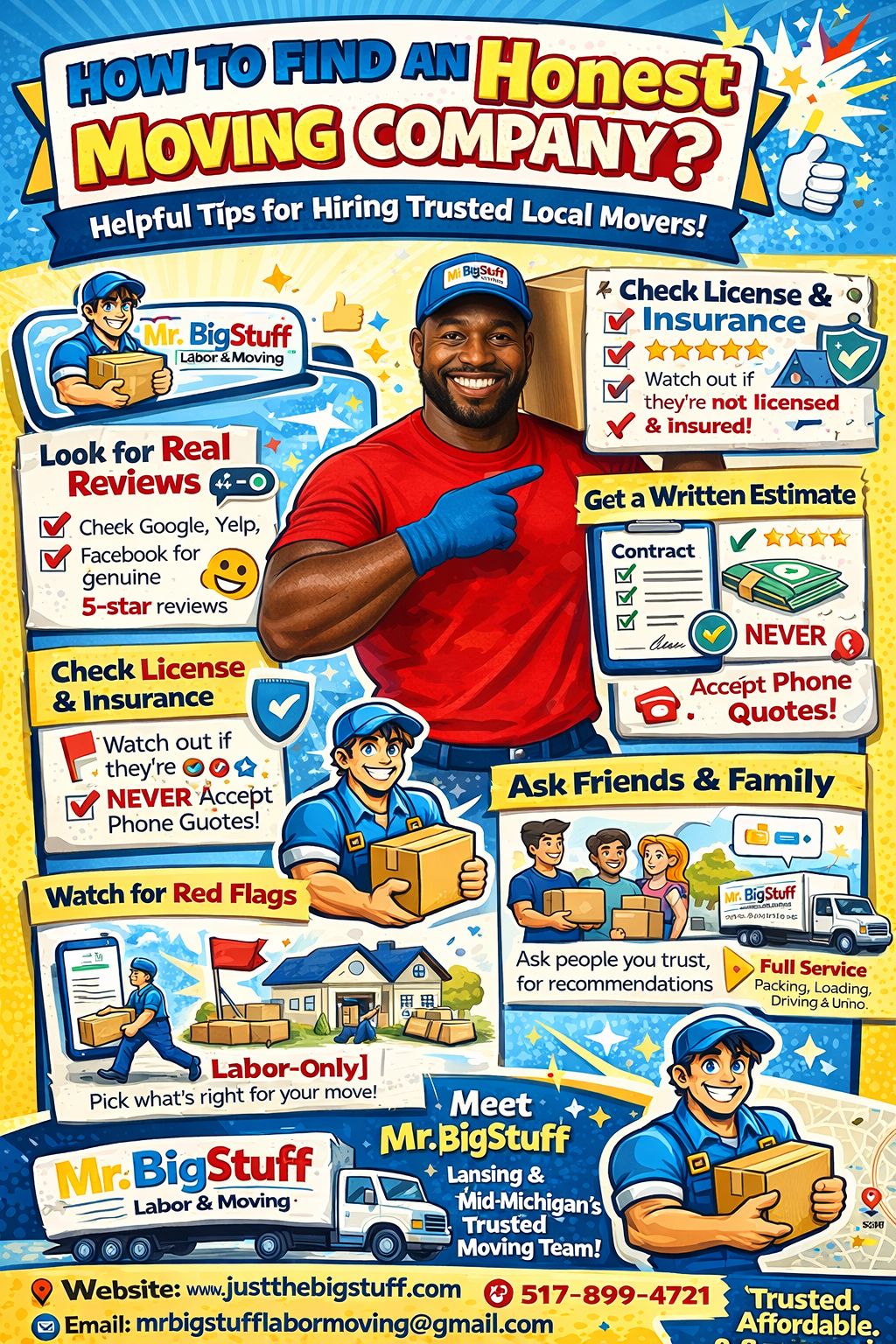 Remember, finding an honest moving company does not have to be hard. Read reviews, check for licenses, get prices in writing, and ask around. And if you are in Mid-Michigan, give Mr. BigStuff Labor and Moving a call. We cannot wait to help make your big move the best move ever!